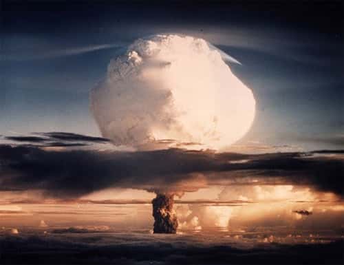 Mais destrutiva que a bomba a atômica é a bomba de hidrogênio, considerada 5 vezes mais potente que as bombas utilizadas na Segunda Grande Guerra.