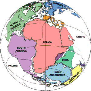 Segundo ele, quando a Pangea se partiu, transformou-se, inicialmente, em dois super continentes: o Norte que ele chamou de Laurasia e o Sul que denominou Gondwanalândia.